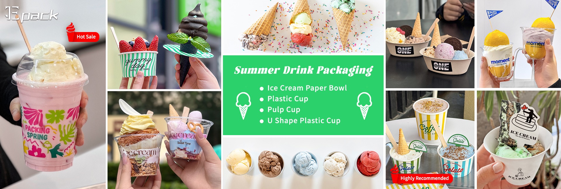 Envase de helado desechable ETpack 160ml 200ml 300ml 360ml con tapa vaso de papel para helado